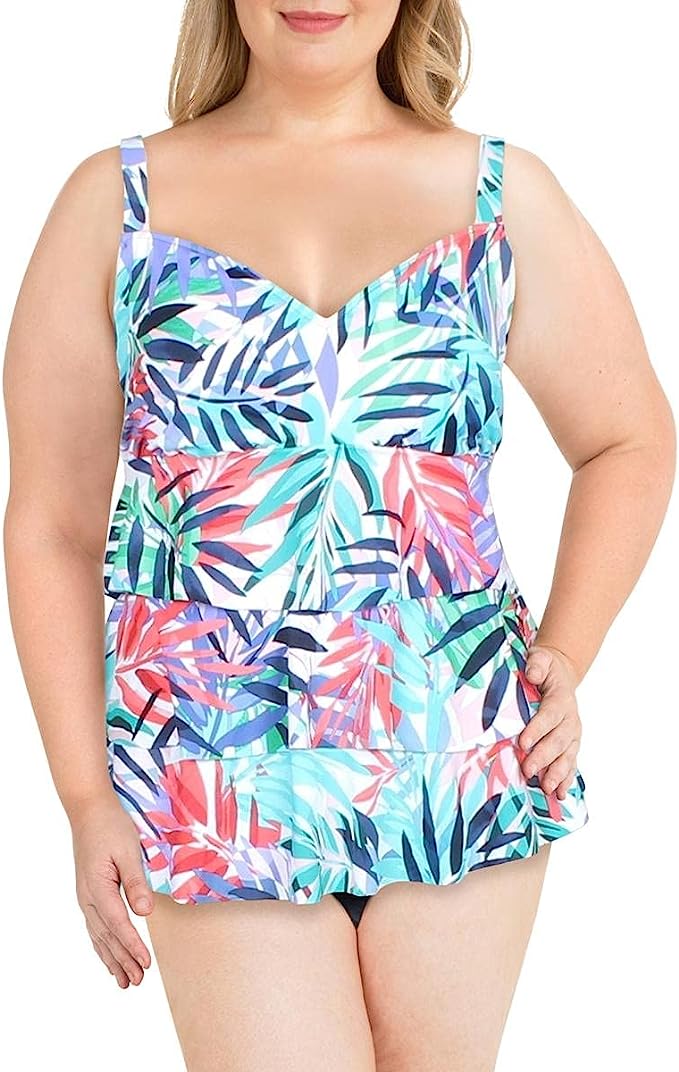 Swim Solutions Women's Plus Tummy Control One-Piece Swimsuit Color Botanical Size 24W