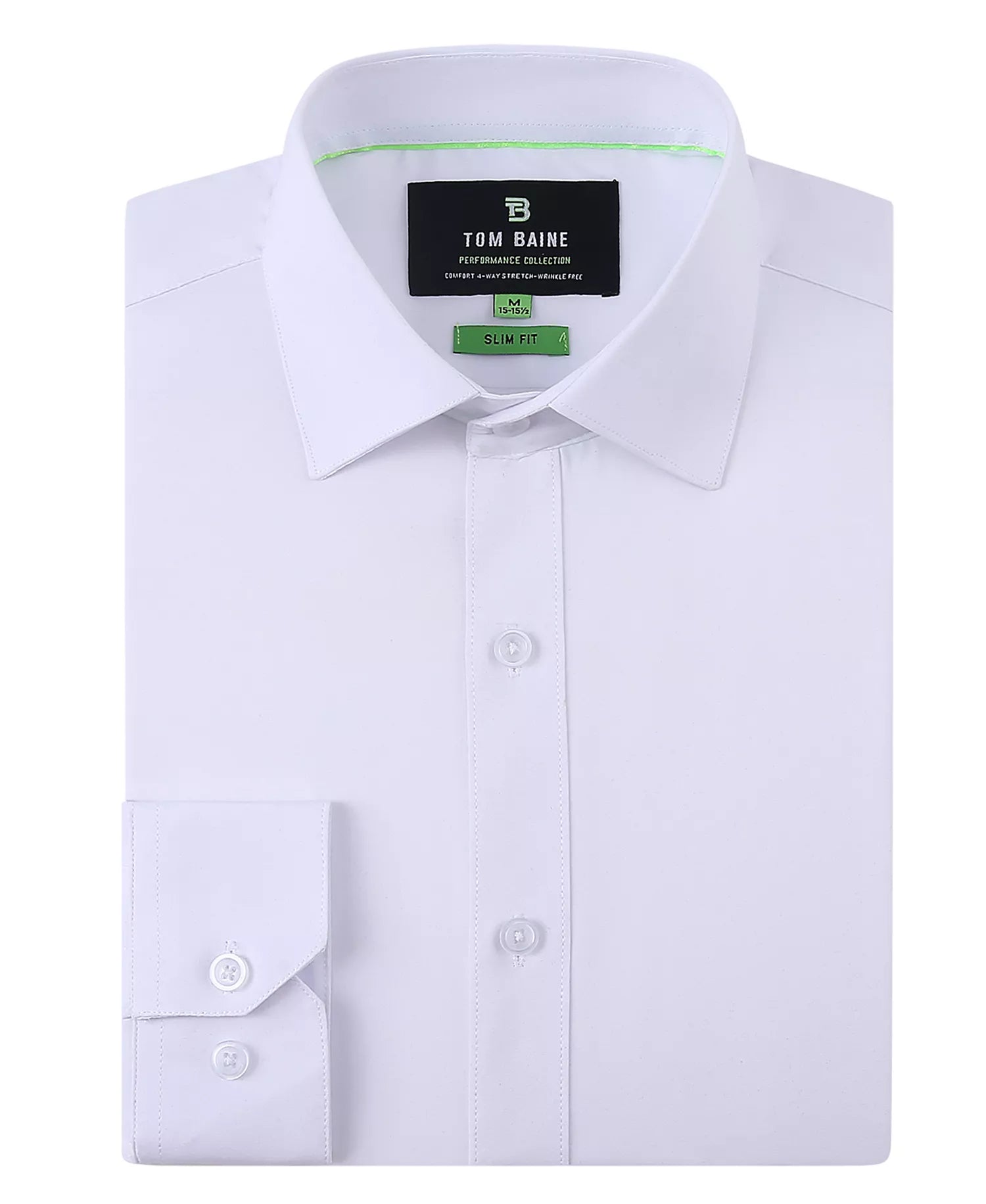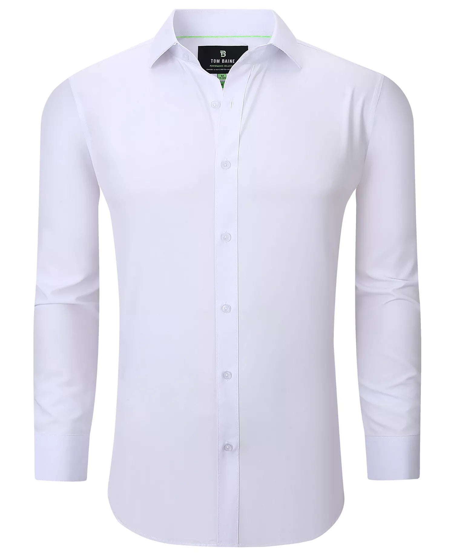 The quintessential dress shirt every professional needs. Tom Baine's polished style ensures maximum productivity with its four-way stretch, non-iron, moisture-wicking fabric. A solid hue and slim fit ensure it'll blend seamlessly with all the power suits in your wardrobe.