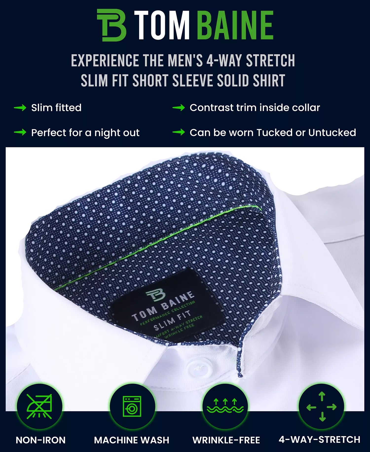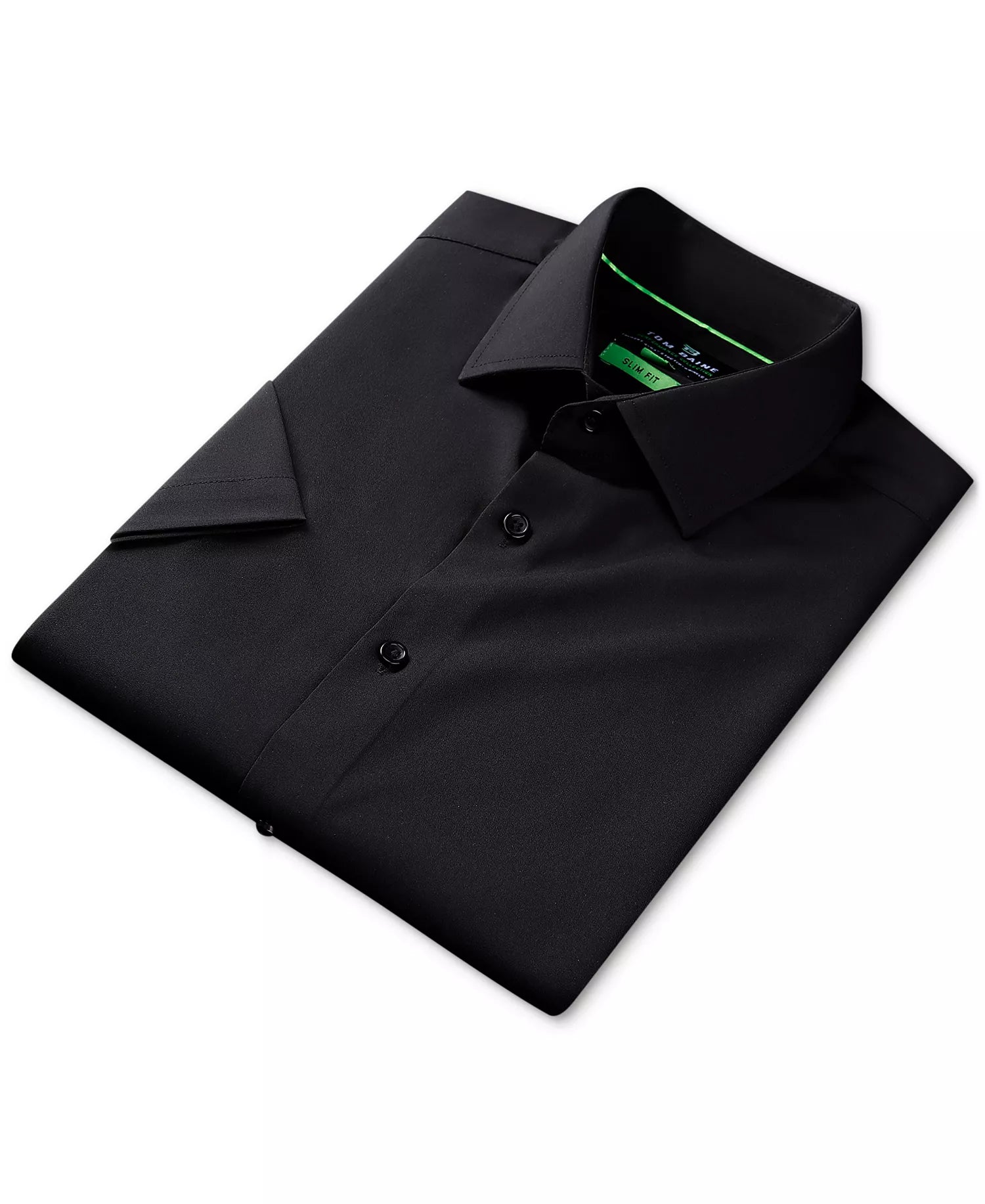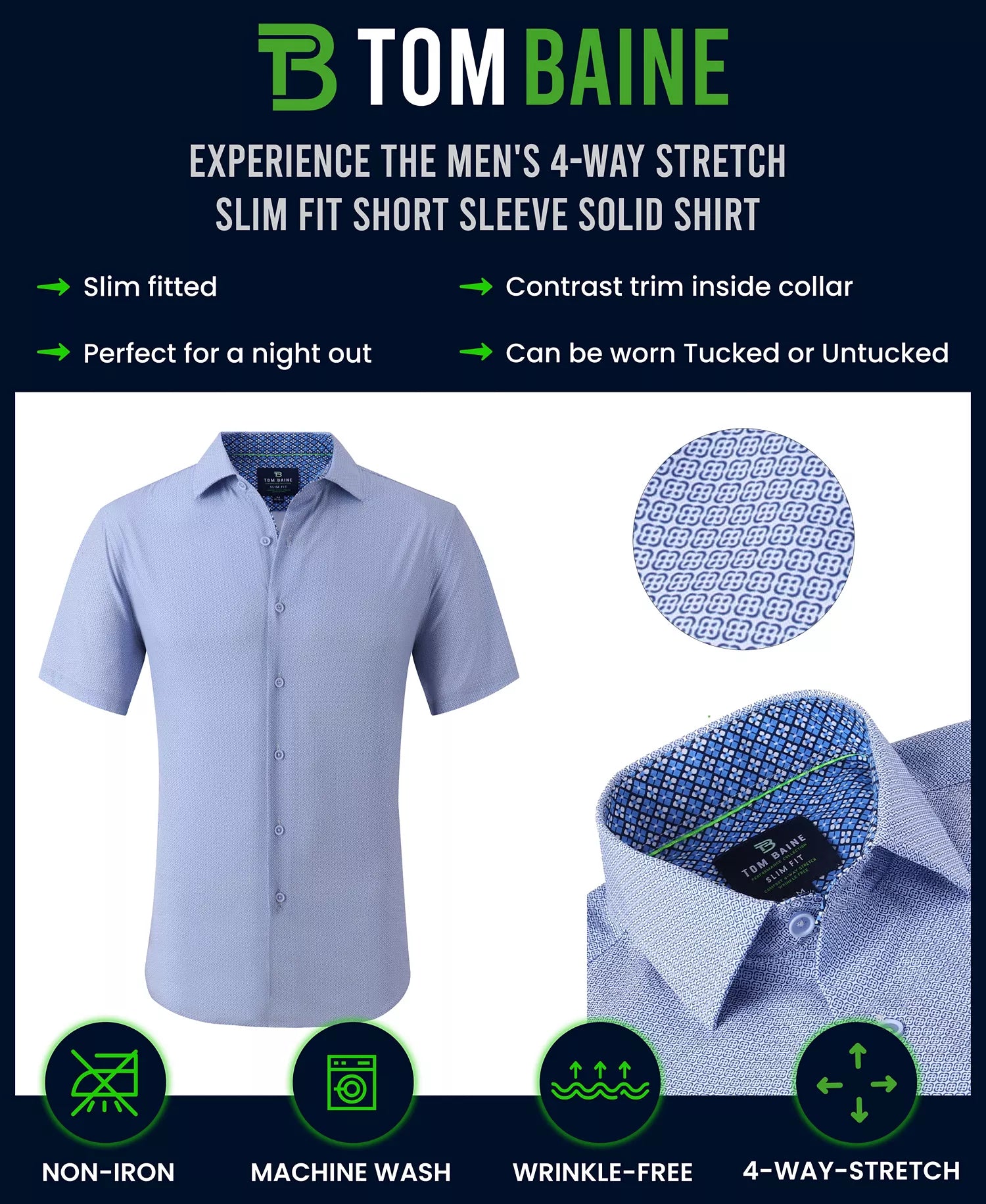 Tom Baine Men's Slim Fit Short Sleeve Dress Shirt Black Size L