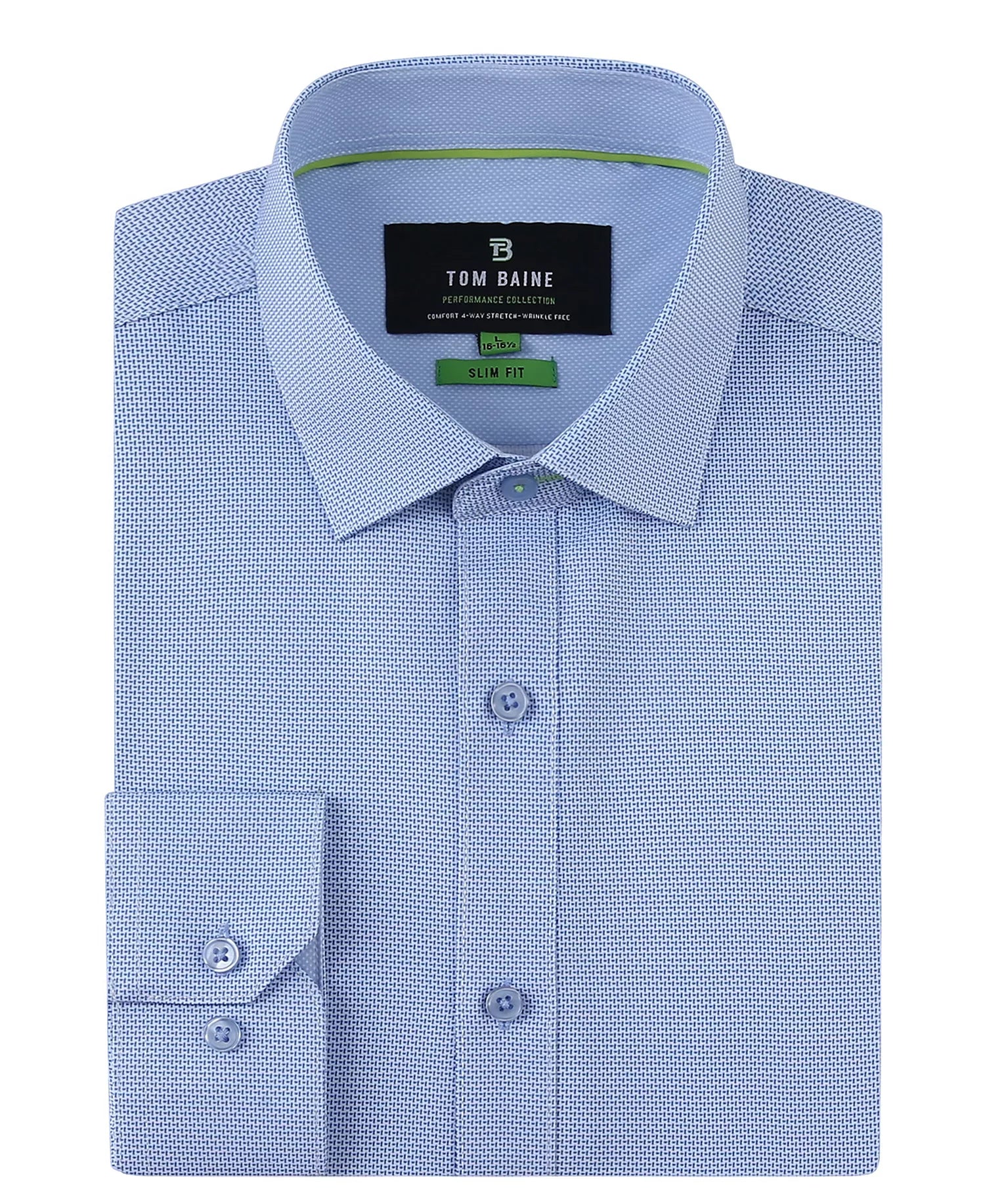 The quintessential dress shirt every professional needs. Tom Baine's polished style ensures maximum productivity with its four-way stretch, non-iron, moisture-wicking fabric. A solid hue and slim fit ensure it'll blend seamlessly with all the power suits in your wardrobe.