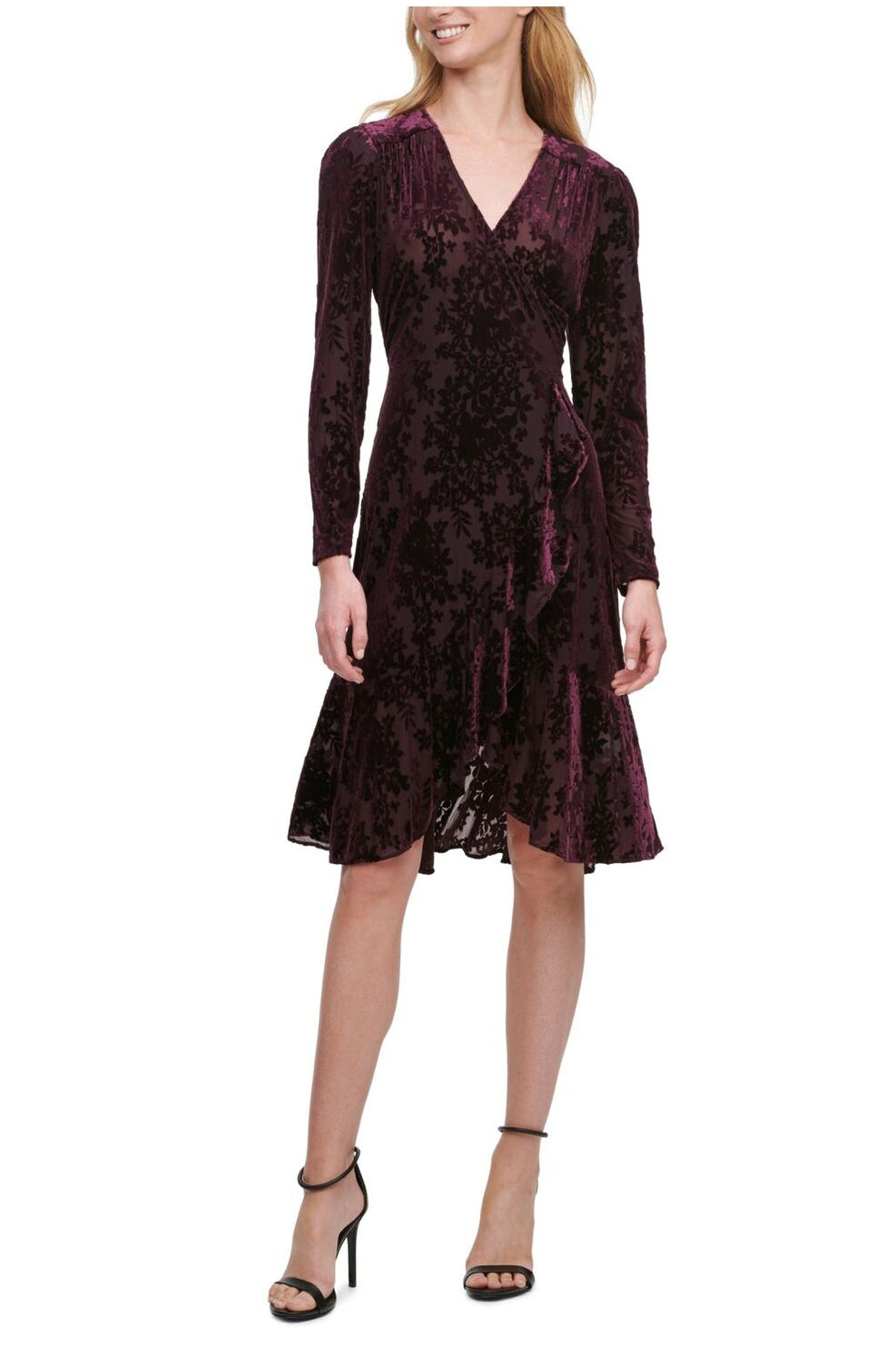 Tommy Hilfiger Quilted Velvet Midi Dress Color Aubergine Size 6