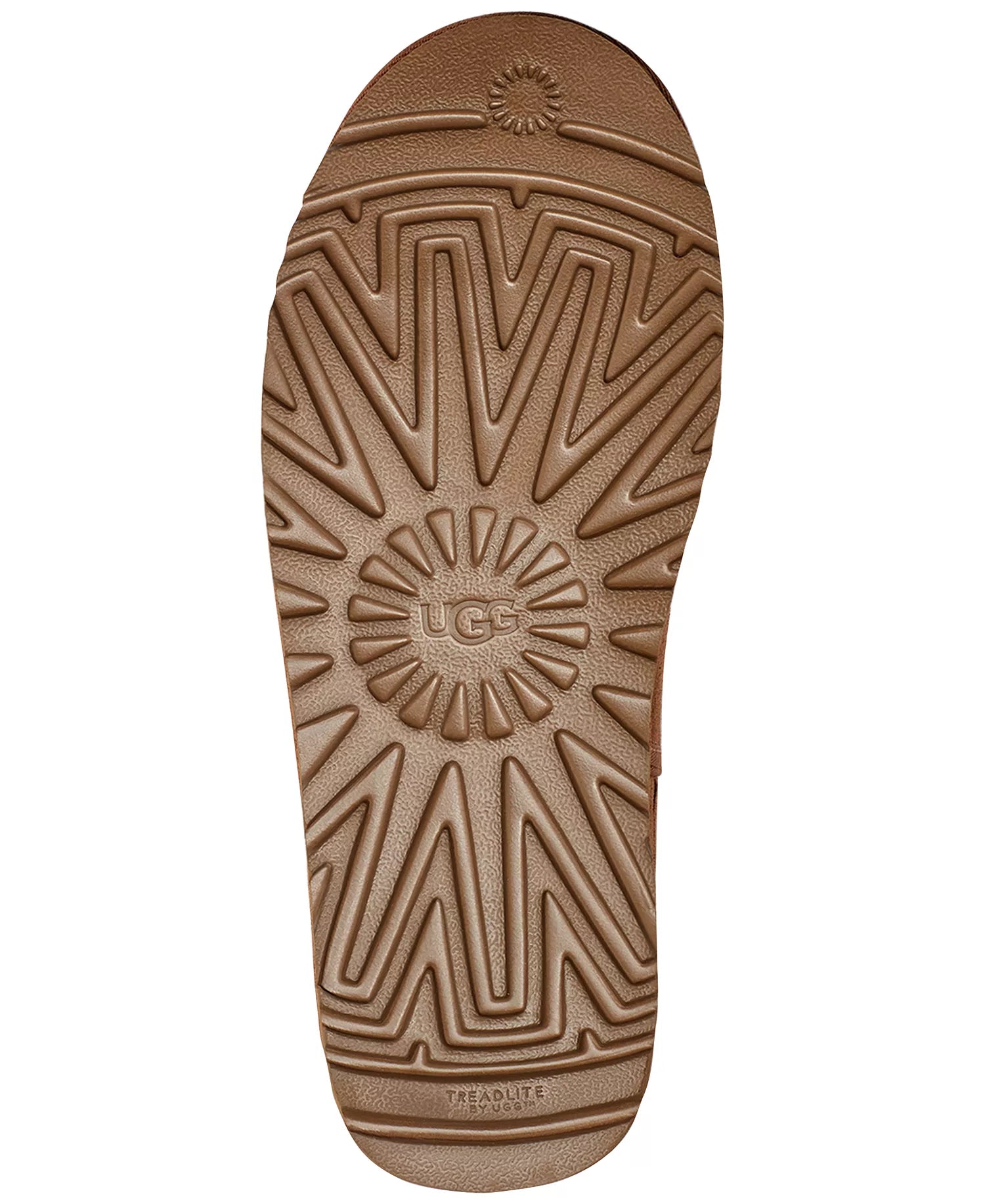 Suede upper; 17mm UGGplush™ wool/lyocell lining and sockliner; UGG® Tasman webbing; foam footbed; polyester fabric binding; rubber sole