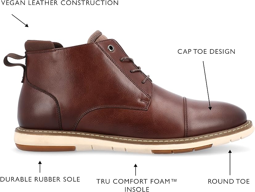 HIGH-QUALITY BOOTS: Every men’s shoe in our collection of boots at Vance Co. is created with the finest materials available. Whether they’re made of faux suede, faux leather, sturdy rubber, EVA, or any other classic material, you can be sure that our designer boots won’t fall apart like many shoes on the market.